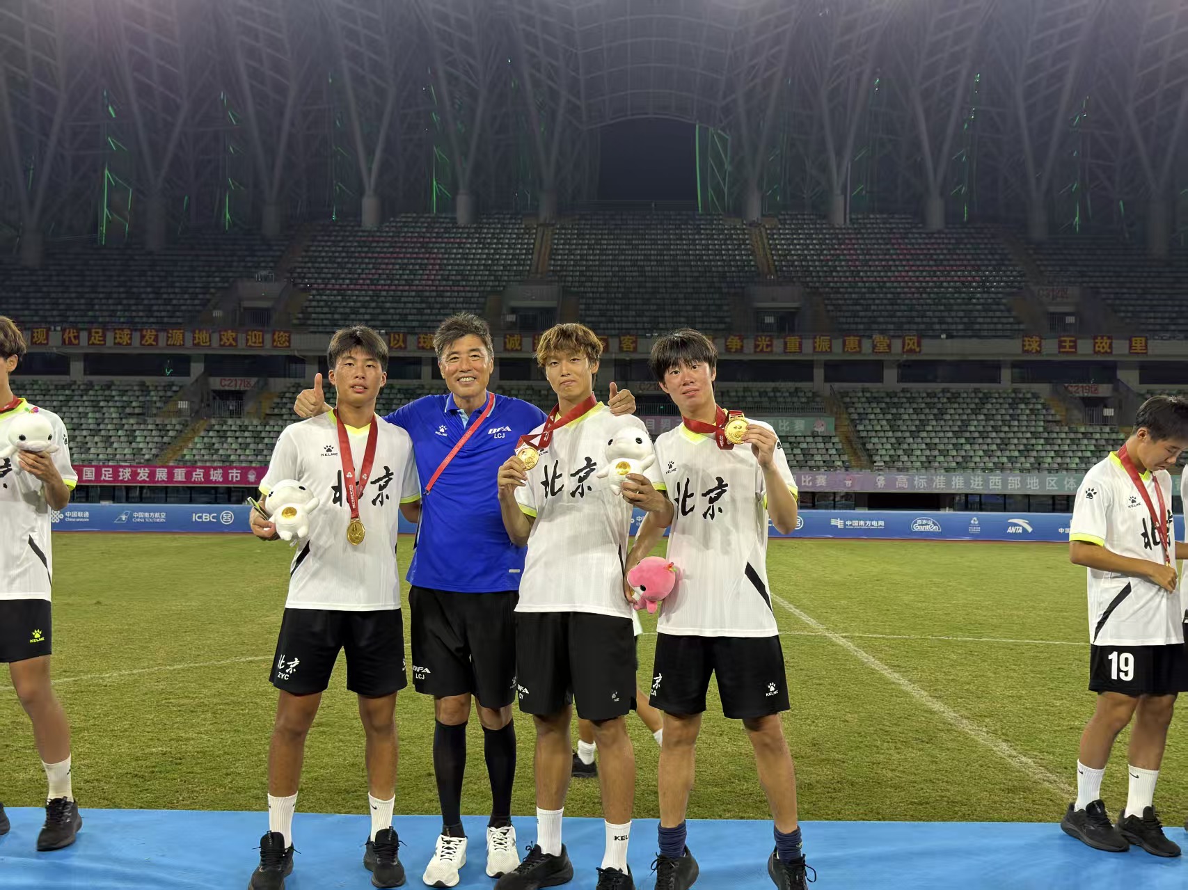 2一朝砥砺成利器,千日耕耘为育才。曹钰今日取得的荣誉,不仅得益于北京市电气工程学校足球社团的系统培养,更凝聚着主教练刘伟光老师的悉心指导与言传身教。无论酷暑严寒还是假期周末,刘伟光老师总是与队员们一同出现在绿茵场上。他以专业的训练锤炼球员技艺,以坚定的陪伴滋养团队精神。正是在这般日复一日的坚守与奉献中,曹钰全国冠军之路的基石被默默铸就,熠熠生辉。社团培养